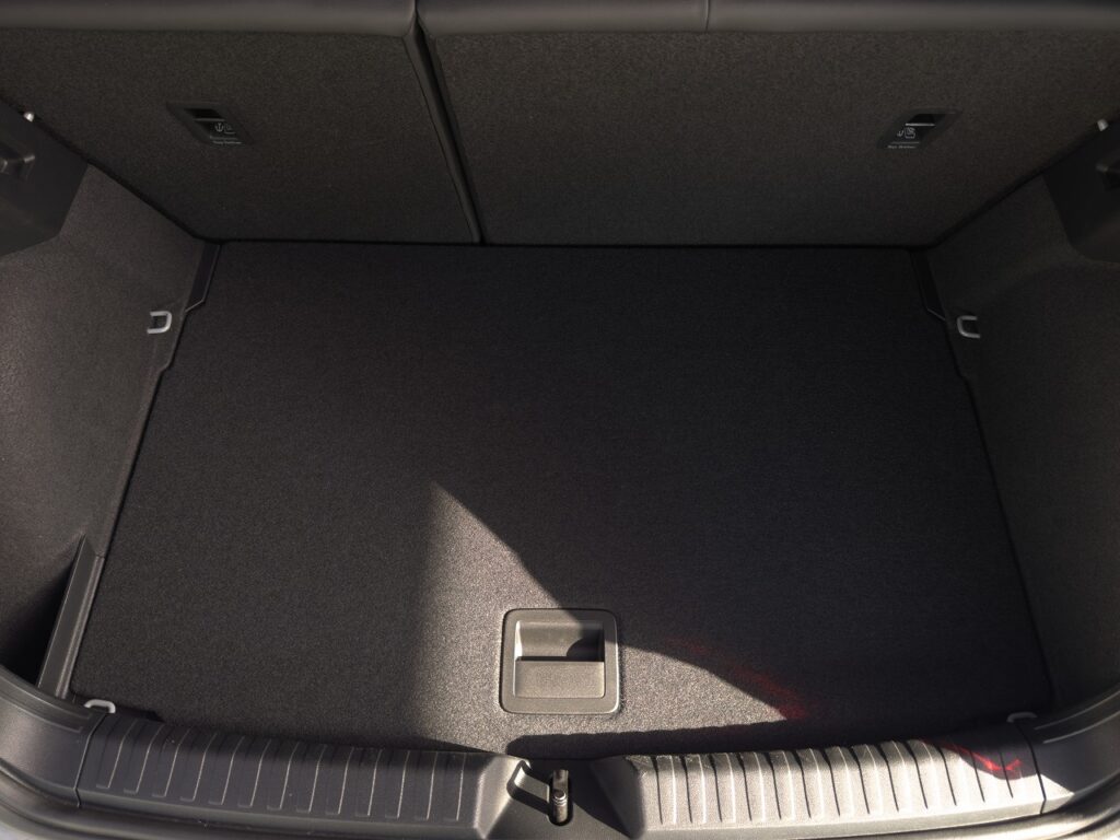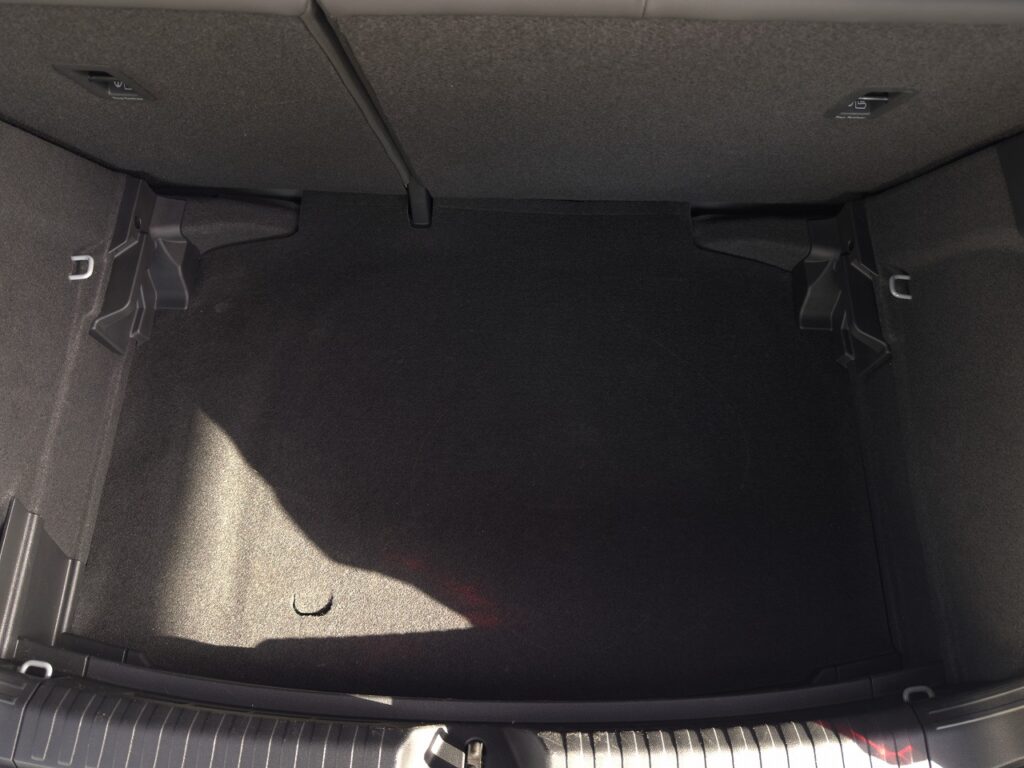 取付前後でこのくらいフロアの高さがアップしました。このくらいの高さがあれば大抵の小物荷物を収納することができてトランクがスッキリしました。もちろん今回のラゲージボードは厚みもあって作りも丈夫なので、上から体重をかけても折れたりしません。