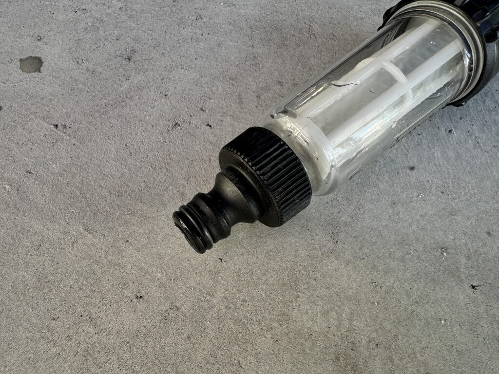 散水ノズルをシャワーモードにして使っているとどうも所々で目詰まりを起こしているようで、その原因を考えた結果おそらく純水器のイオン交換樹脂だろうという結論に至りました。