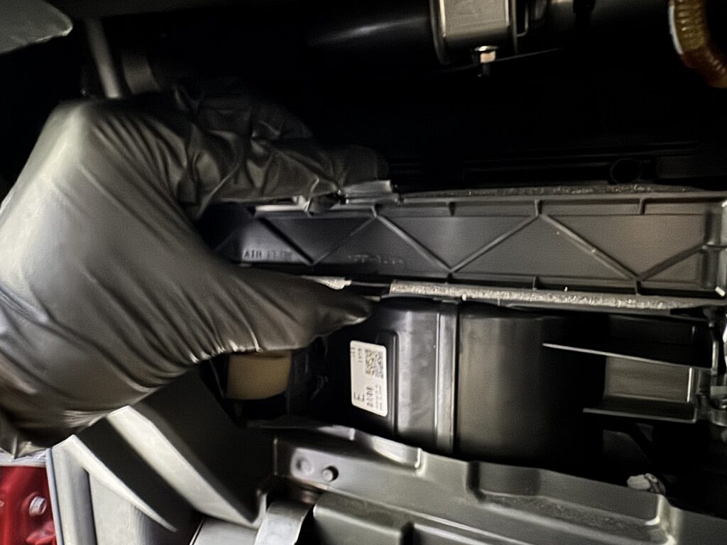 大抵の自動車のエアコンフィルターはグローブボックス奥にあるので、このグローブボックスを外していきます。