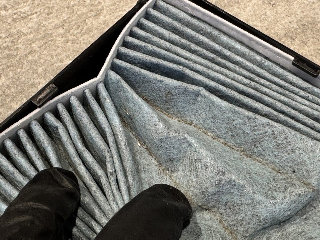 本日の作業はマツダ・デミオ(DJ)のエアコンフィルターの交換。目安としては1年ごとの交換をおススメします。