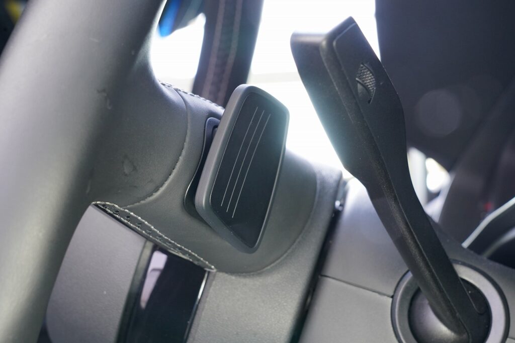 装着はとっても簡単、付属の両面テープで純正パドルシフトの裏側から貼り付けるだけです。